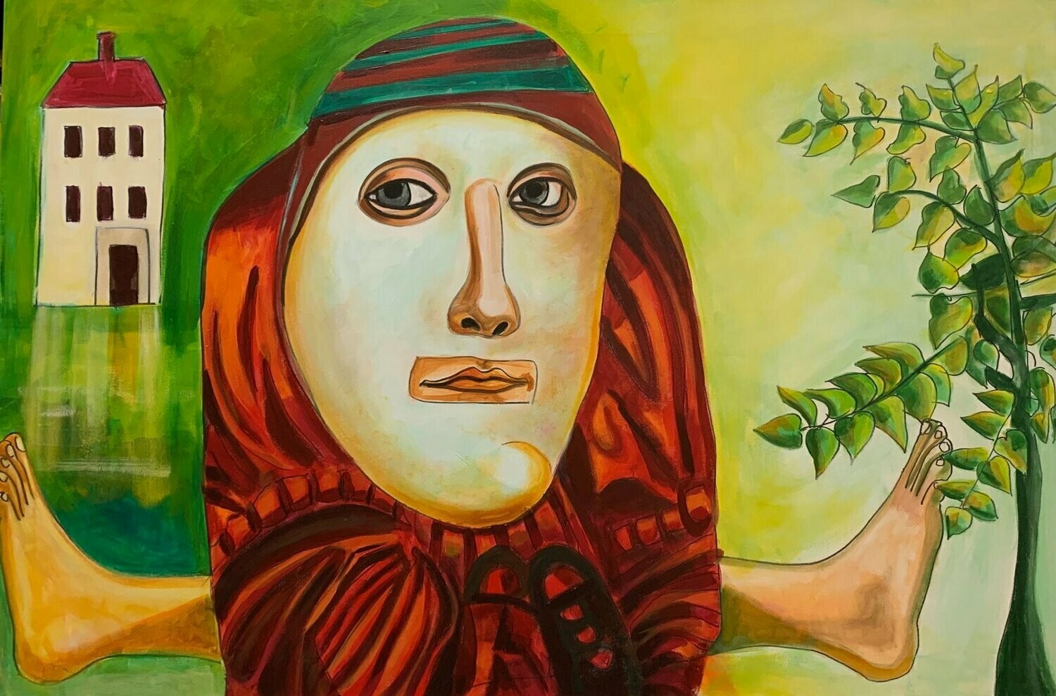 L'opera fa parte della serie nata dal lavoro di collage digitale realizzato con un software particolarmente divertente e creativo, trasformata poi in pittura.